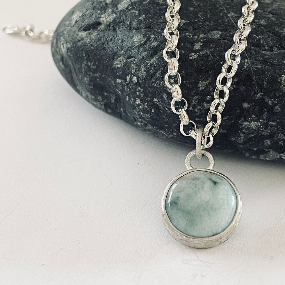 "Blauer Larimar - Innere Ruhe und Stabilität führen zu geistigem Wachstum und kreativem Handeln. Freue dich über Ideen und neue Perspektiven."